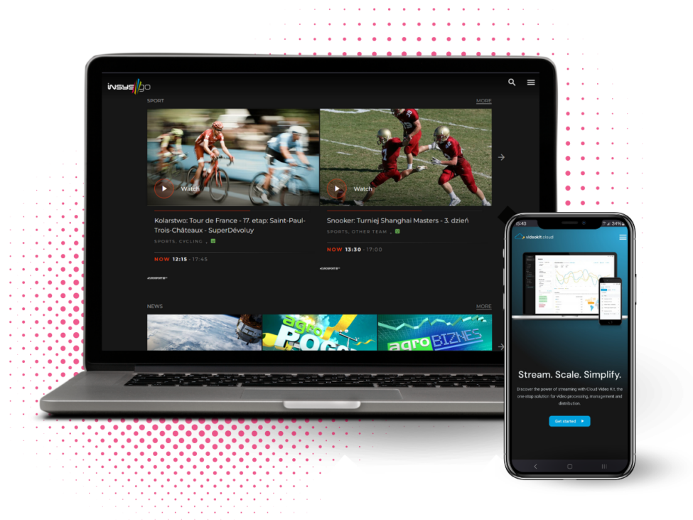 - InsysGO – an end-to-end, white-label platform for streaming live and VOD content to dozens of different end-user devices (including browsers, mobile, and Smart TVs). Comes with content security services, AI-powered features such as automatic transcriptions, live event markers or recommendations, extensive analytics and easy-to-use admin panel.