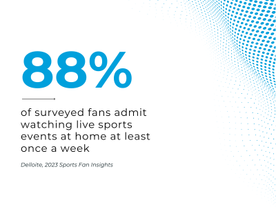 Take Gen Z, for example. A recent Deloitte survey found that 88% of sports fans watch live events from home at least once a week. And it’s not hard to see why: watching from home means they’re in control. No lines, no pricey snacks, and no distractions. It’s their game, their way, and for most fans, that’s exactly how they want it.